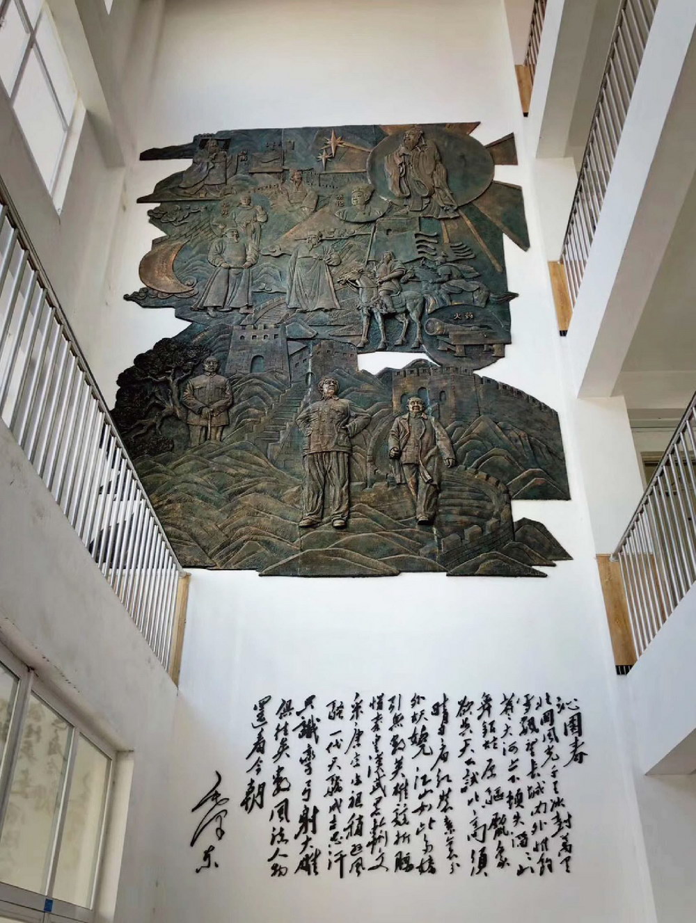 天津津南雙港中學大廳鍛銅浮雕壁畫