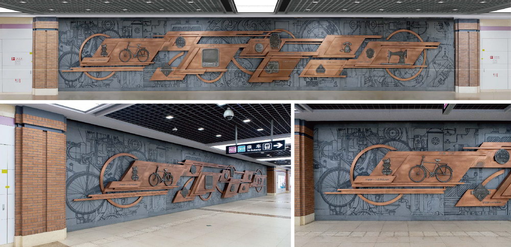 地鐵六號線工業(yè)文化主題站-紅旗南站《輕工杰作-引領時代》浮雕墻